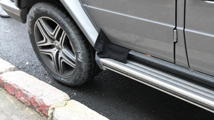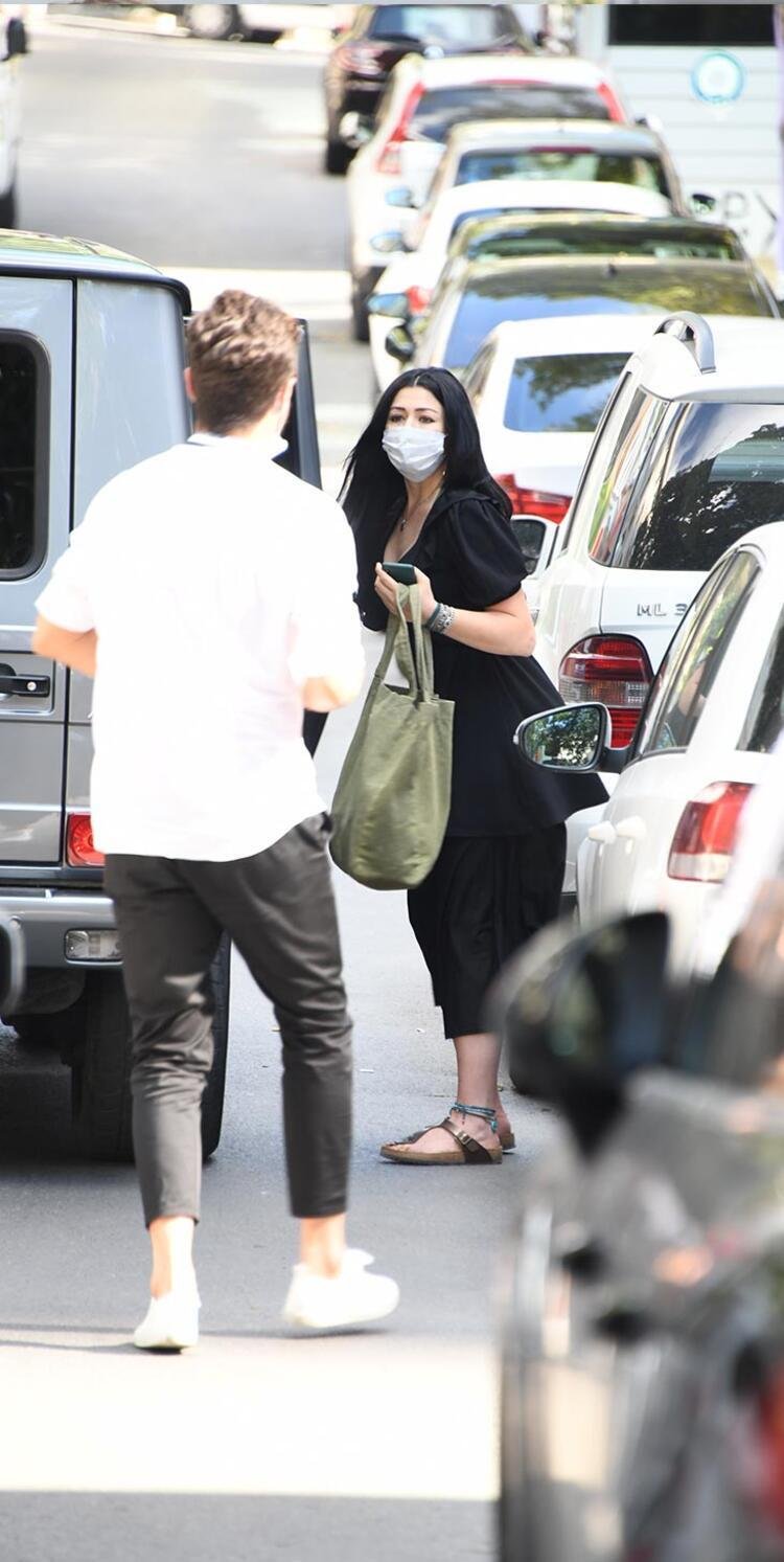 Kameraları fark edince hızlıca aracına binen Deniz Çakır’ın, kıyafeti kapıya sıkışınca kapısını açmak zorunda kaldı.