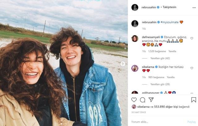 Yorumlardan birini de Şahin ile İstanbullu Gelin dizisinde anne-kızı oynayan Defne Samyeli’den geldi. Samyeli çiftin aşk dolu pozlarına “Ebrucum, ışığınız, enerjiniz… Ne mutlu” yorumunu yaptı.