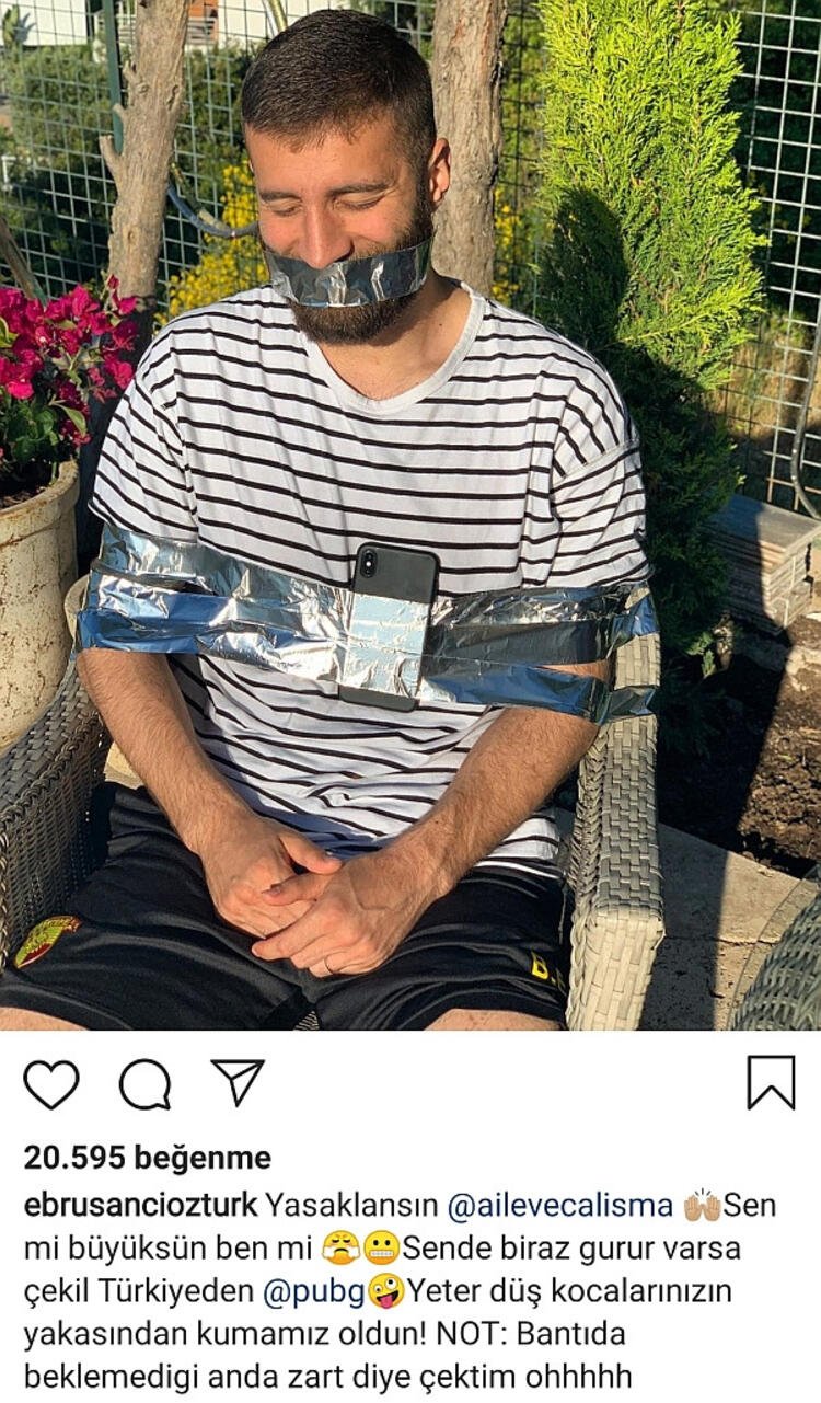 Kocasını telefonuyla birlikte sandalyeye bantlayan Ebru Şancı paylaşımında Aile Bakanlığı’na seslenerek şunları dile getirdi: