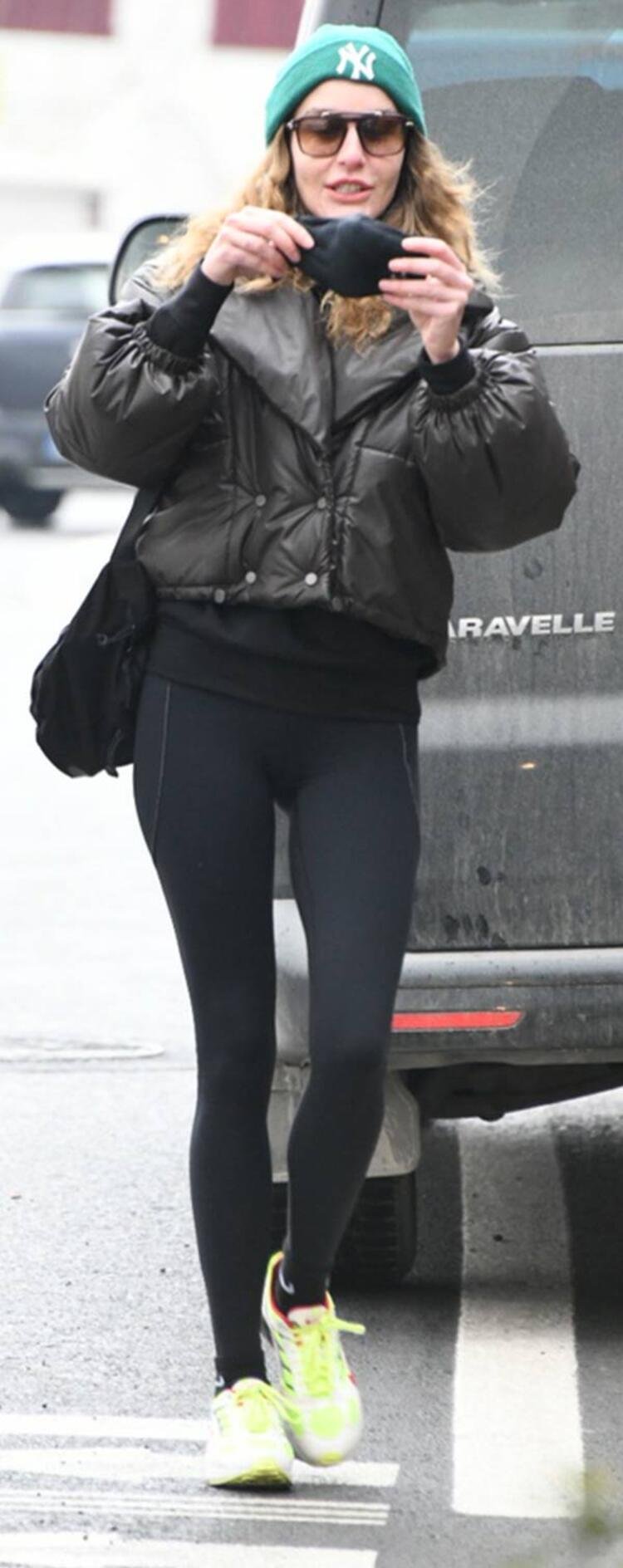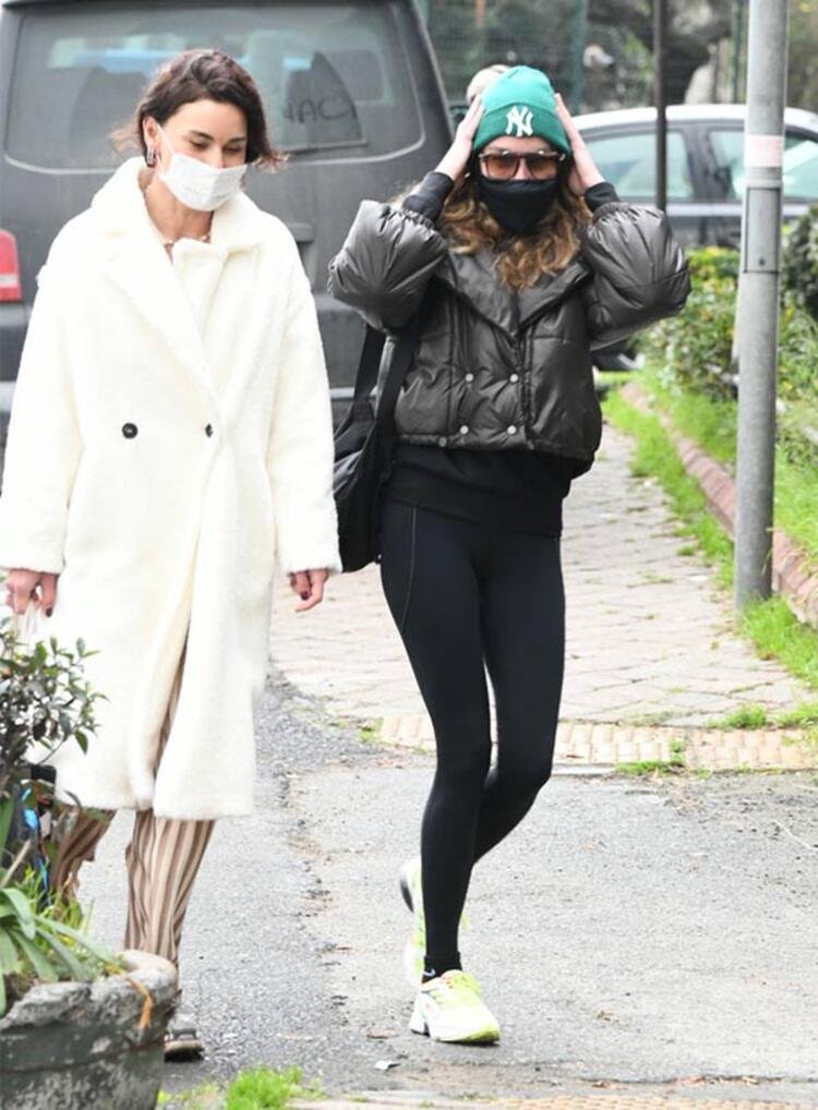 Maskesiz olduğu görülen Ece Sükan, görüntülendiğini fark edince cebinden maskesini çıkarıp takarken objektiflere yansıdı.