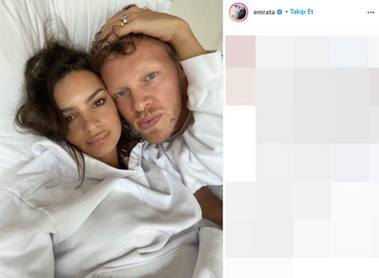 Oyuncu Sebastian Bear-McClard ile evli olan model Emily Ratajkowski, karnı burnunda pozunu yayınladı.
