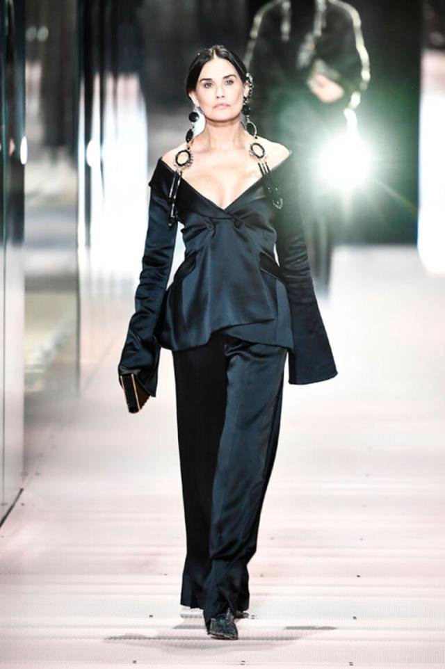 Siyah bir pantolon ve bluz tanıtımı için podyuma çıkan, üç çocuk annesi 58 yaşındaki Moore, estetik iddialarını geçmişte sık sık yalanlasa da podyumdaki hali kimseyi inandıramadı. Yüzüne estetik müdahale yaptırdığı ilk bakışta anlaşılan Moore’un abartılı elmacık kemikleri ve şekli tamamen değişen dudak yapısı binlerce eleştiriye neden oldu.