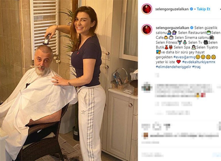 Yönetmen eşi Hamdi Alkan’ı tıraş eden Selen Görgüzel, o anları sosyal medya hesabından paylaştı. Ünlü şarkıcı, Instagram hesabından yayınladığı kareye, “Selen güzellik salonu. Selen restaurant. Selen kafe. Selen sinema salonu. Selen fitness. Selen TV. Selen butik. Selen spa. Selen tiyatro ve daha bir sürü şey. Hayat gerçekten #evesığarmış. Yeter ki iste. Elimden de her iş gelir” notunu düştü.?