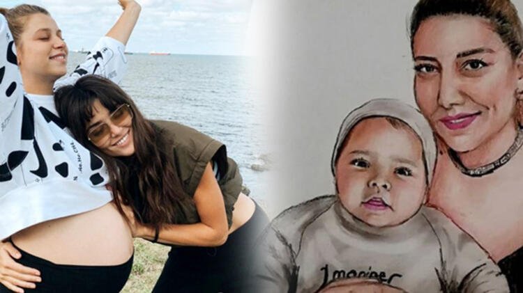 Hande Erçel’e bir takipçisi yeğeni ve onu hiç göremeyen annesinin kara kalem resmini hediye etti.