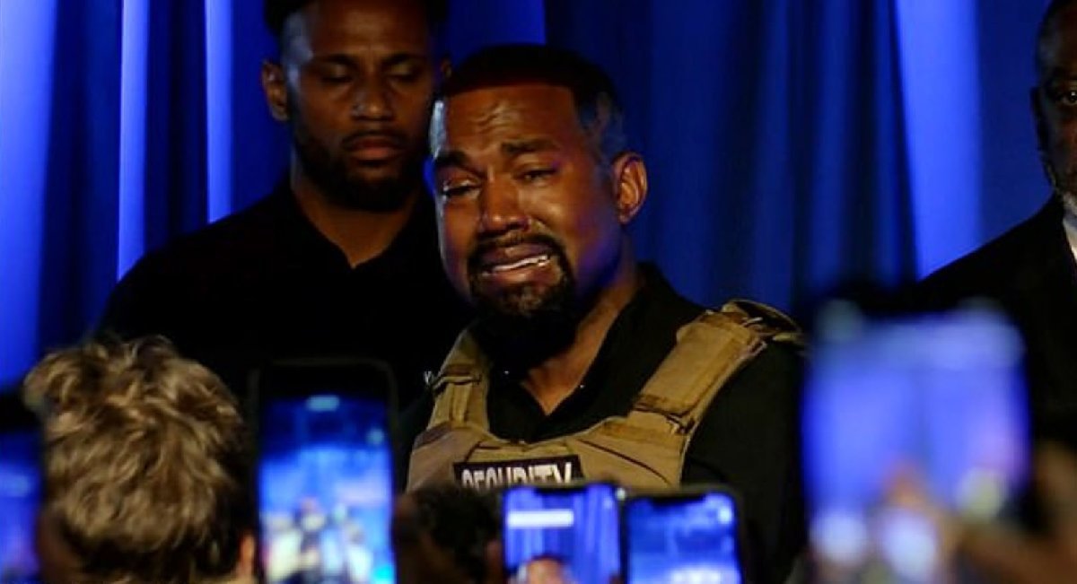 Kanye West ilk mitinginde gözyaşlarına boğuldu.