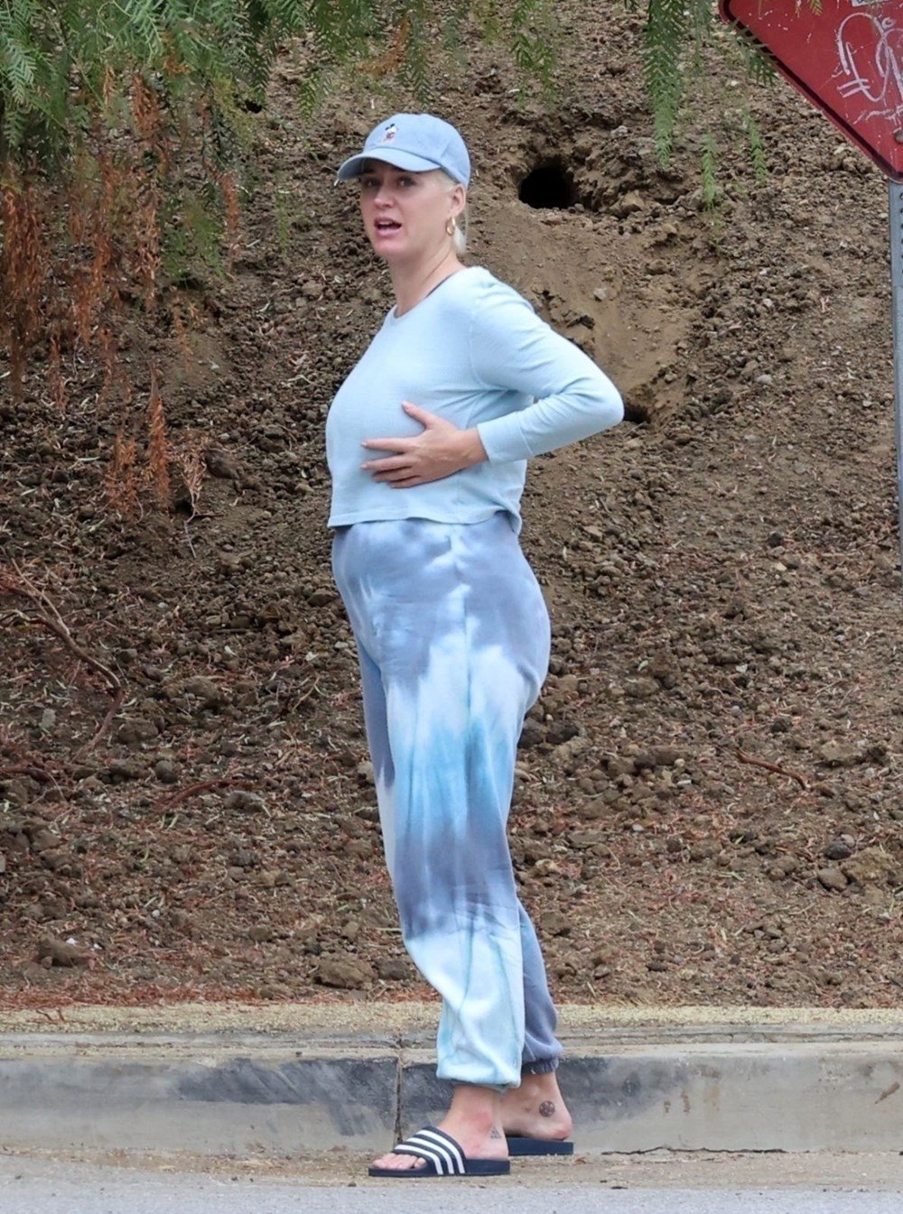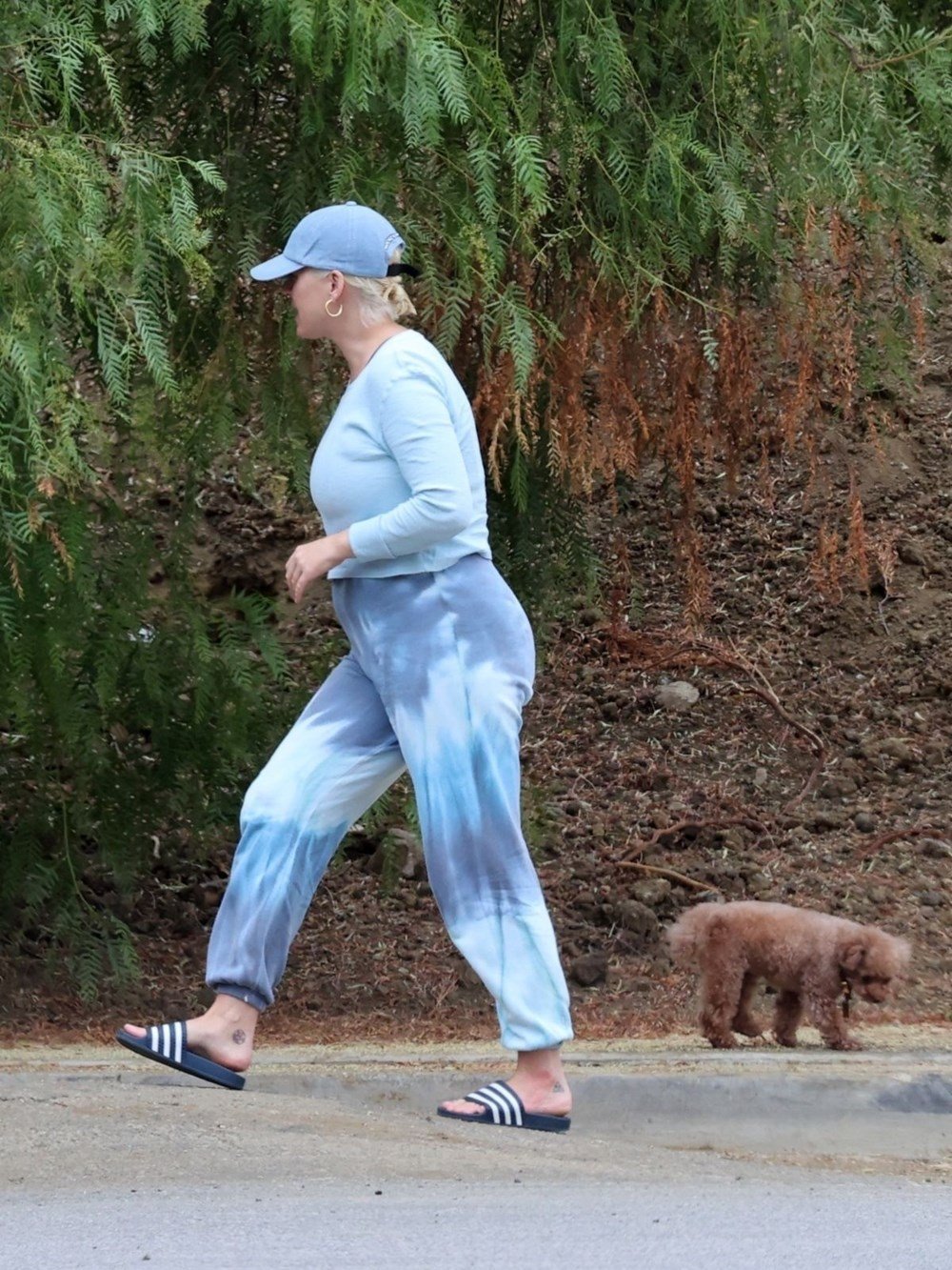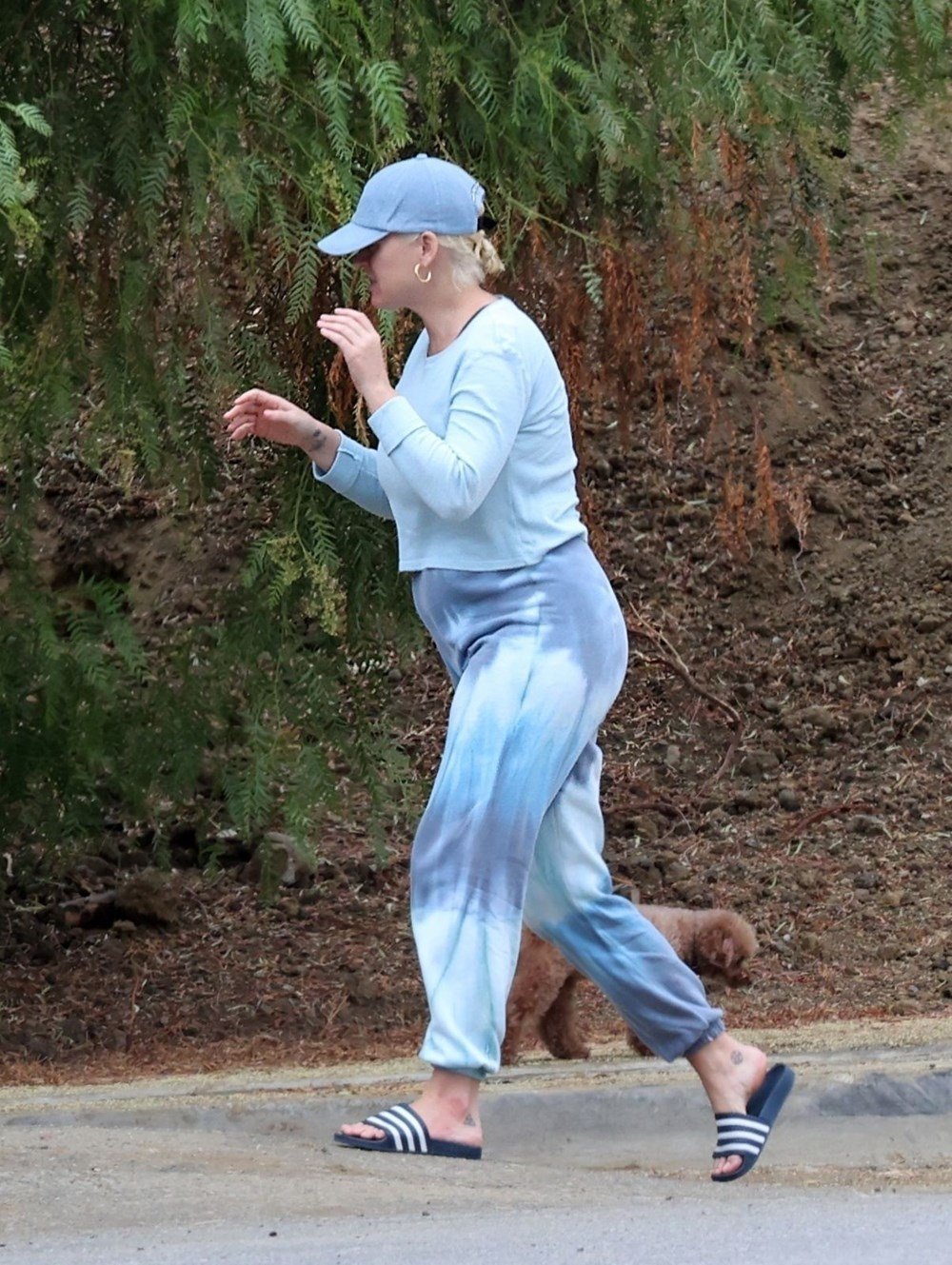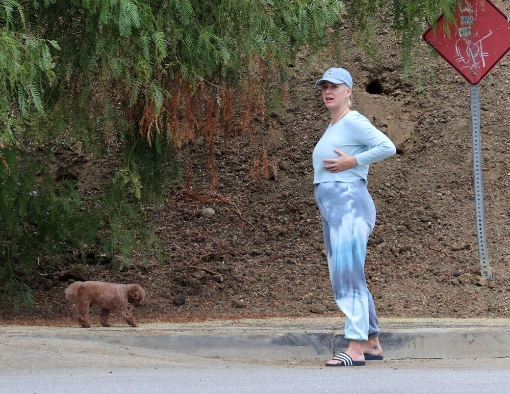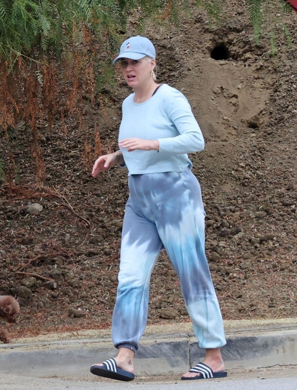 Yürüyüş için terlik tercih eden Perry, kendisini görüntüleyen paparazzileri fark etse de temposunu bozmadan yoluna devam etti.
