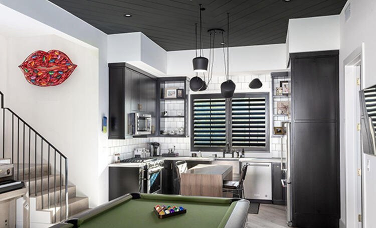 Mutfakta iki bulaşık makinesi, son teknoloji ürünü cihazlar barındıran evin bahçesinde özel barbekü istasyonu da yer alıyor. Ahşap kirişli, yüksek tavanlı evin kapalı spor salonu, terası, sinema salonu da bulunuyor.