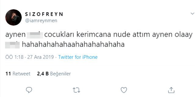 Söylemezsem Olmaz sunucusu Ece Erken, Reynmen’e yüklenerek “Bir erkek bir erkeğe neden donuyla fotoğraf atar?” diyerek tepki gösterdi. Reynmen söz konusu fotoğrafların haber olmasından sonra Twitter’da küfür ederek şunları söyledi: “Aynen a… çocukları Kerimcan’a nude attım aynen olay”