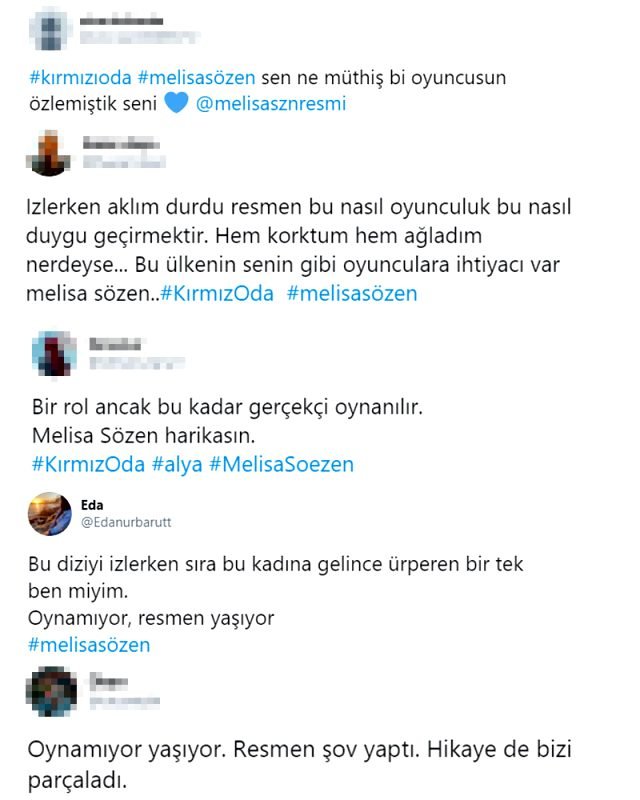 Dizide Alya’nın sahneleri seyirciyi etkilerken, sosyal medyanın da gündeminde yer aldı. Sözen için “Sen müthiş bir oyuncusun”, “Resmen yaşadın”, “Bir rol ancak bu kadar gerçekçi oynanır” gibi yorumlar yapıldı.