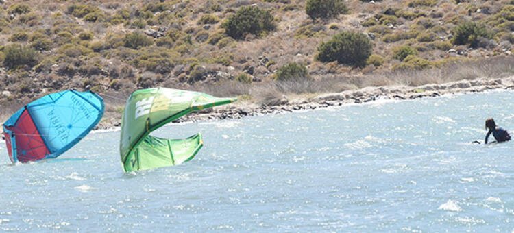 Oflaz’ın, bir ara kitesurf yapan arkadaşıyla ipleri birbirine dolandı.