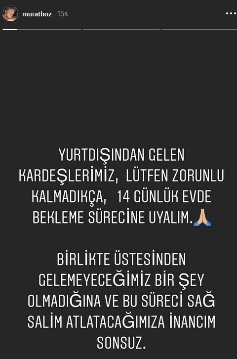 Yurt dışından gelenler için bir çağrıda bulunan Murat Boz şunları söyledi:
