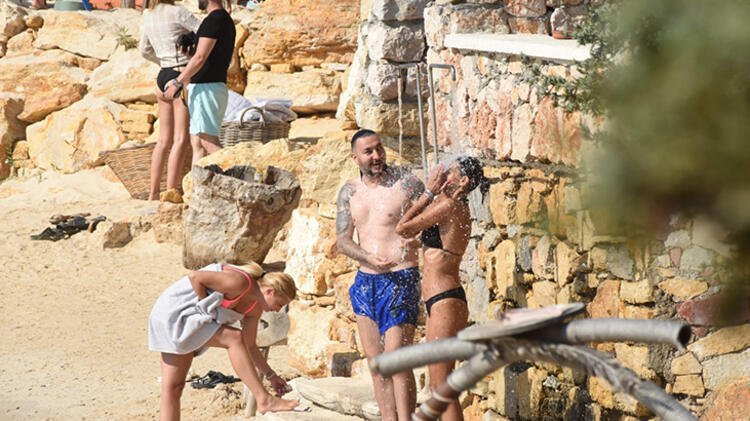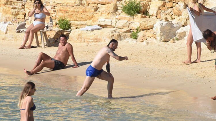 Kız arkadaşını İzmir’e bırakan Necati Ateş, arkadaşlarıyla yüzdü.