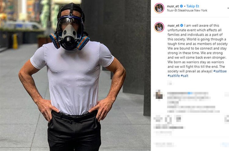 ‘Tuz serpme’ (saltbae) hareketi ile fenomen olan Nusret Gökçe, gaz maskesi ile verdiği pozu Instagram hesabından paylaştı.