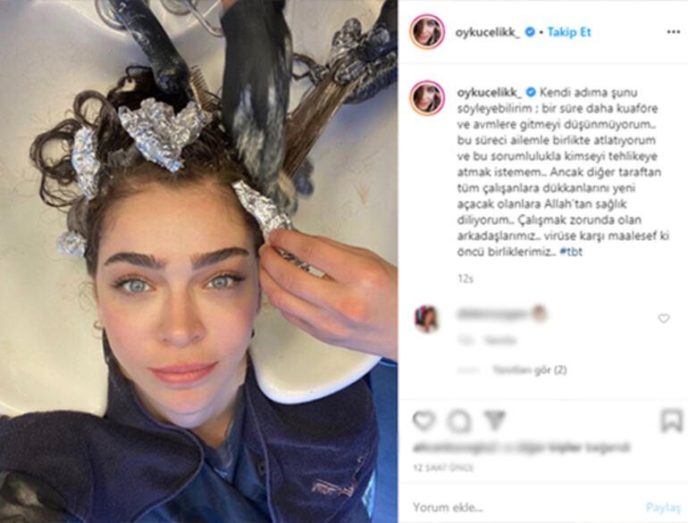 Uzun süredir ev karantinasında olan oyuncu Öykü Çelik, kuaförde saçlarını boyatırken çekilmiş eski bir fotoğrafını paylaşarak altına şunları yazdı: