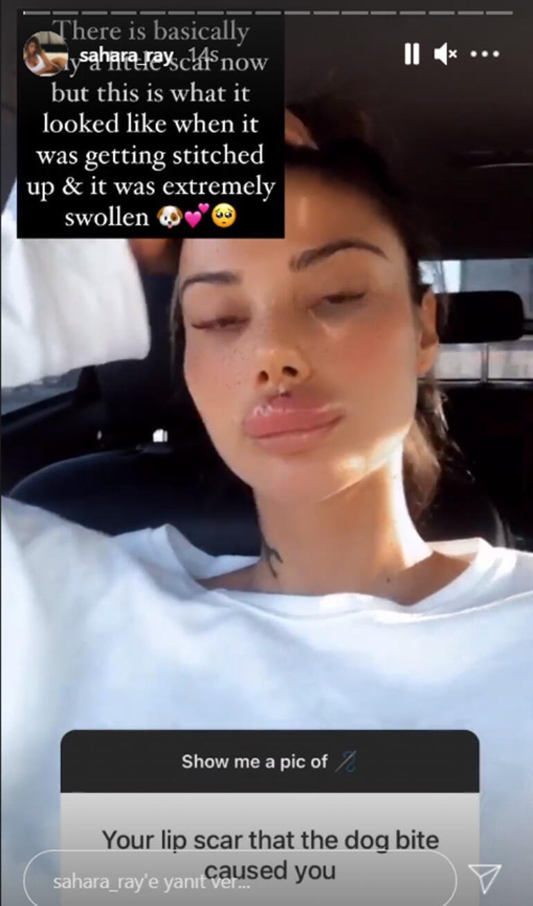 Sahara Ray, birkaç yıl önce dudağının köpek tarafından ısırıldığını söyleyerek bir video paylaştı. Ray, videosuna, “Temelde sadece basit bir yara vardı ama dikiş atıldığında böyle görünüyordu. Aşırı derecede şişmişti” diye yazdı.