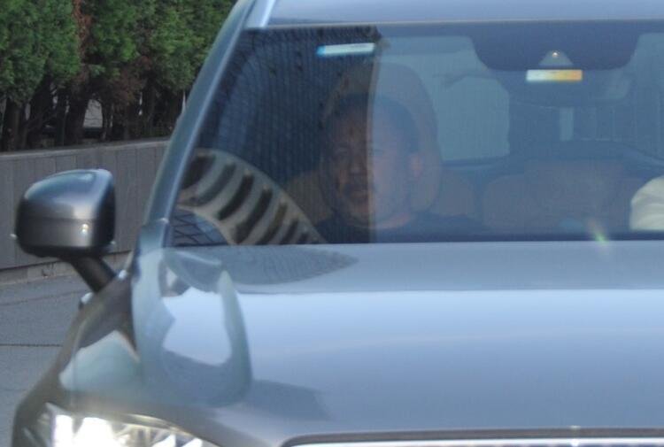 Sergen Yalçın mekanı otopark kapısından terk etti, arkadaşının aracına binerek uzaklaştı.