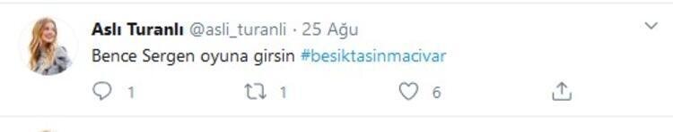 Aslı Turanlı, ağustos ayında Beşiktaş’ın POAK takımıyla oynadığı maç sırasında “Bence Sergen oyuna girsin” şeklinde bir tweet atmıştı.