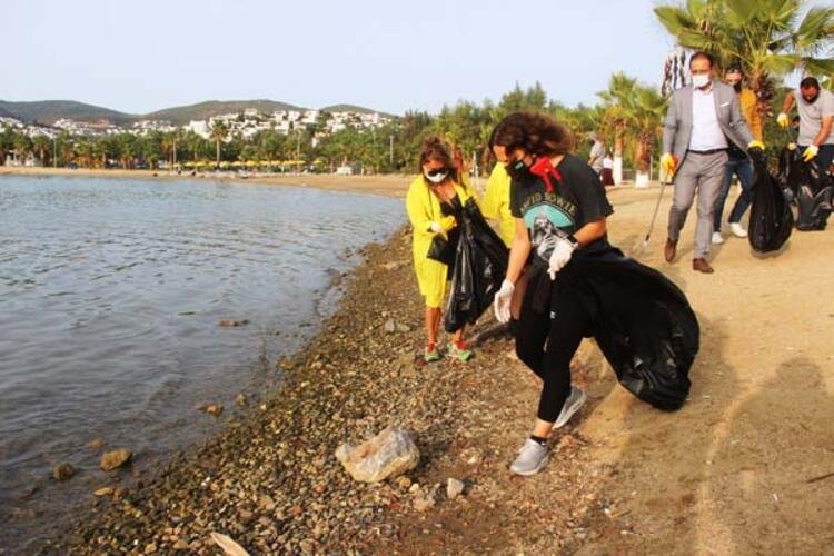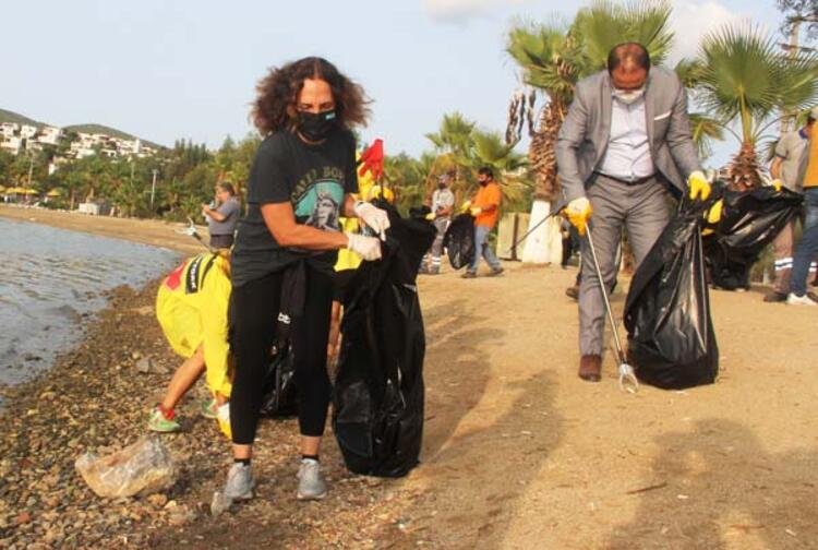Gurup üyelerinin ve ünlü sanatçıların yanı sıra Bodrum Belediye Başkan Yardımcısı Tayfun Yılmaz’da çöp topladı.