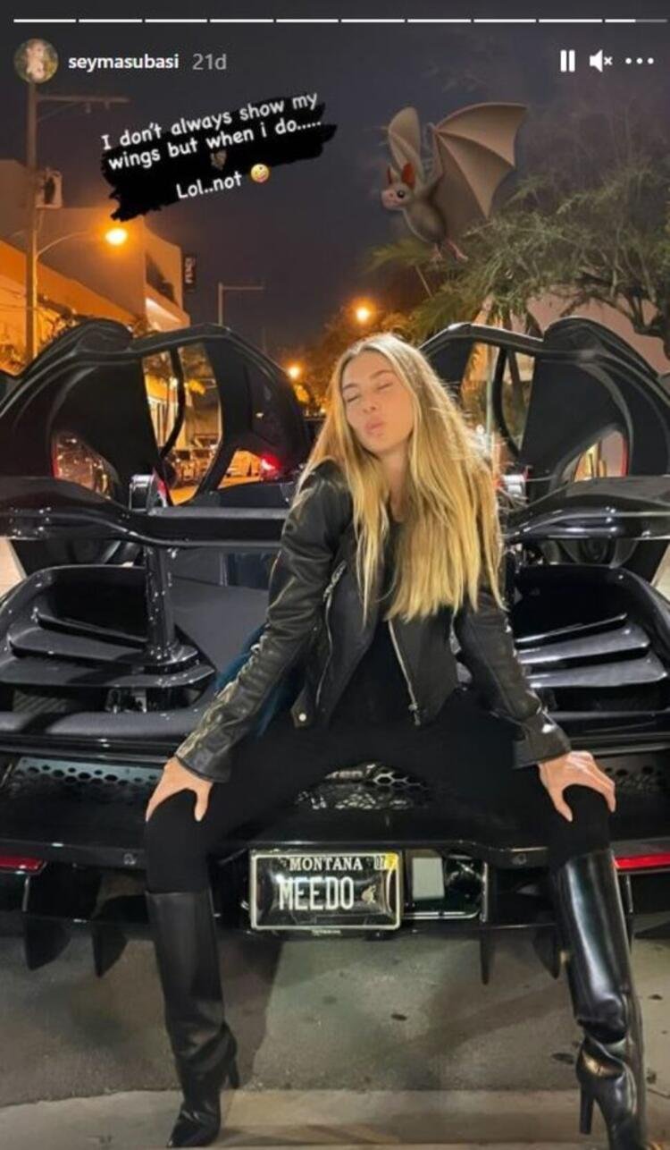 Daha önce de sevgilisinin otomobillerini gösteren Şeyma Subaşı şimdi de lüks aracın önünde plaka detayına dikkat çekerek poz verdi.
