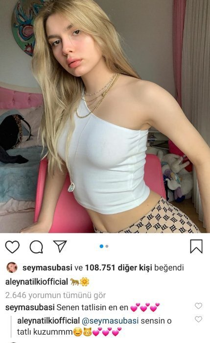 Karantina sebebiyle evinden çıkamayan Tilki, evinden paylaştığı karelerle öne çıkıyor ve beğeni topluyor. Aleyna’nın hesabından paylaştığı son fotoğraflara gelen binlerce yorum ve beğeni arasında Şeyma Subaşı ismi dikkat çekti.