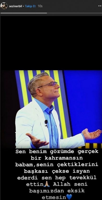 Ameliyat olacağı iddiası doktoru tarafından yalanlanan Mehmet Ali Erbil’in büyük kızı Sezin, Instagram hesabından yazdığı satırlarla babasına olan sevgisini ve onun sağlığına dair duyduğu endişeyi gösterdi: “Sen benim gözümde gerçek bir kahramansın babam, senin çektiklerini başkası çekse isyan ederdi sen hep tevekkül ettin. Allah seni başımızdan eksik etmesin”