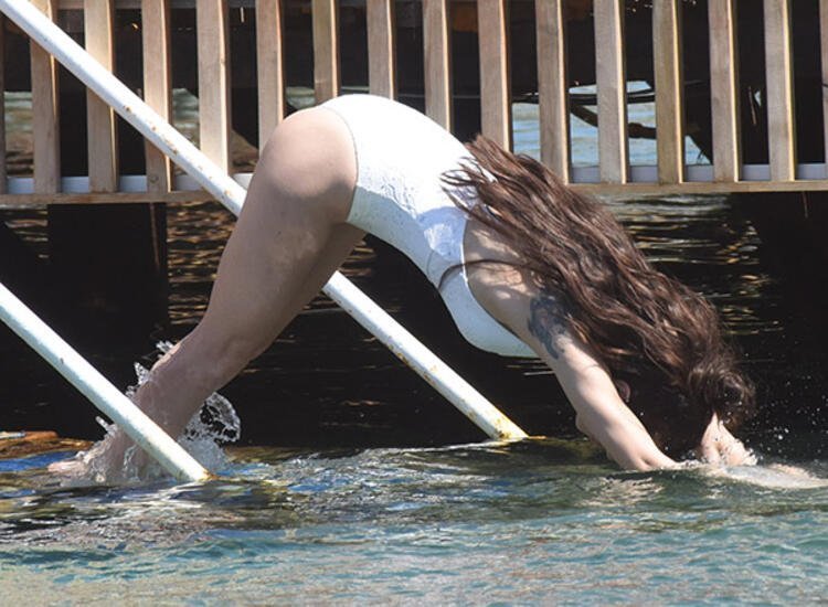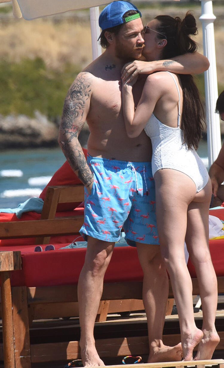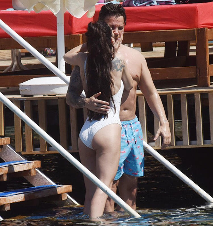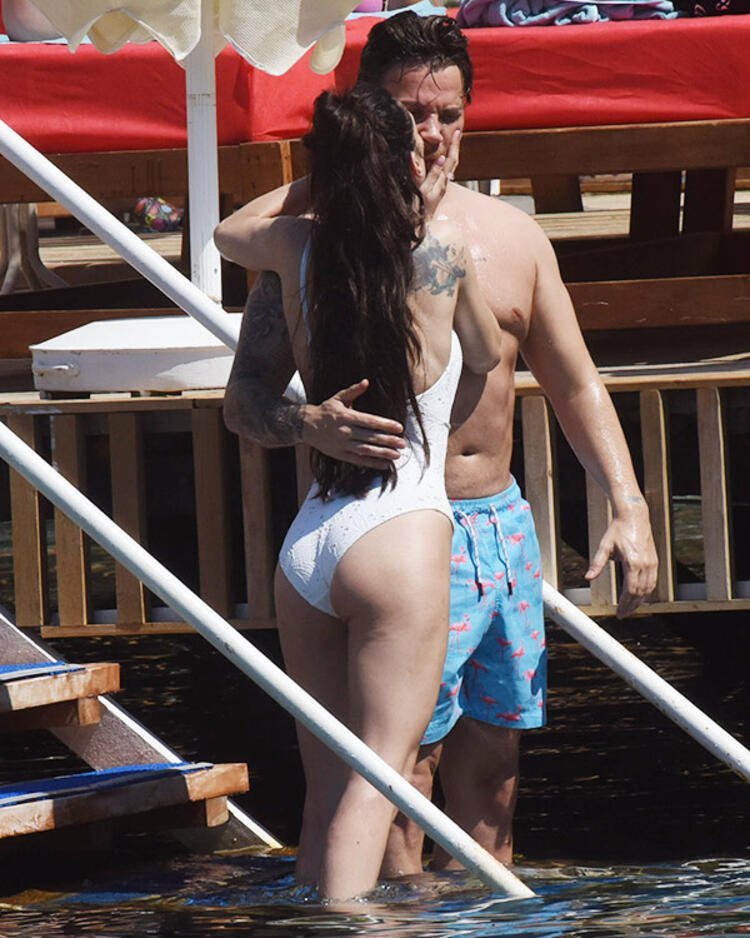 Akçıl, sevgilisi Burcu Kıratlı ile birlikte denize girdi.