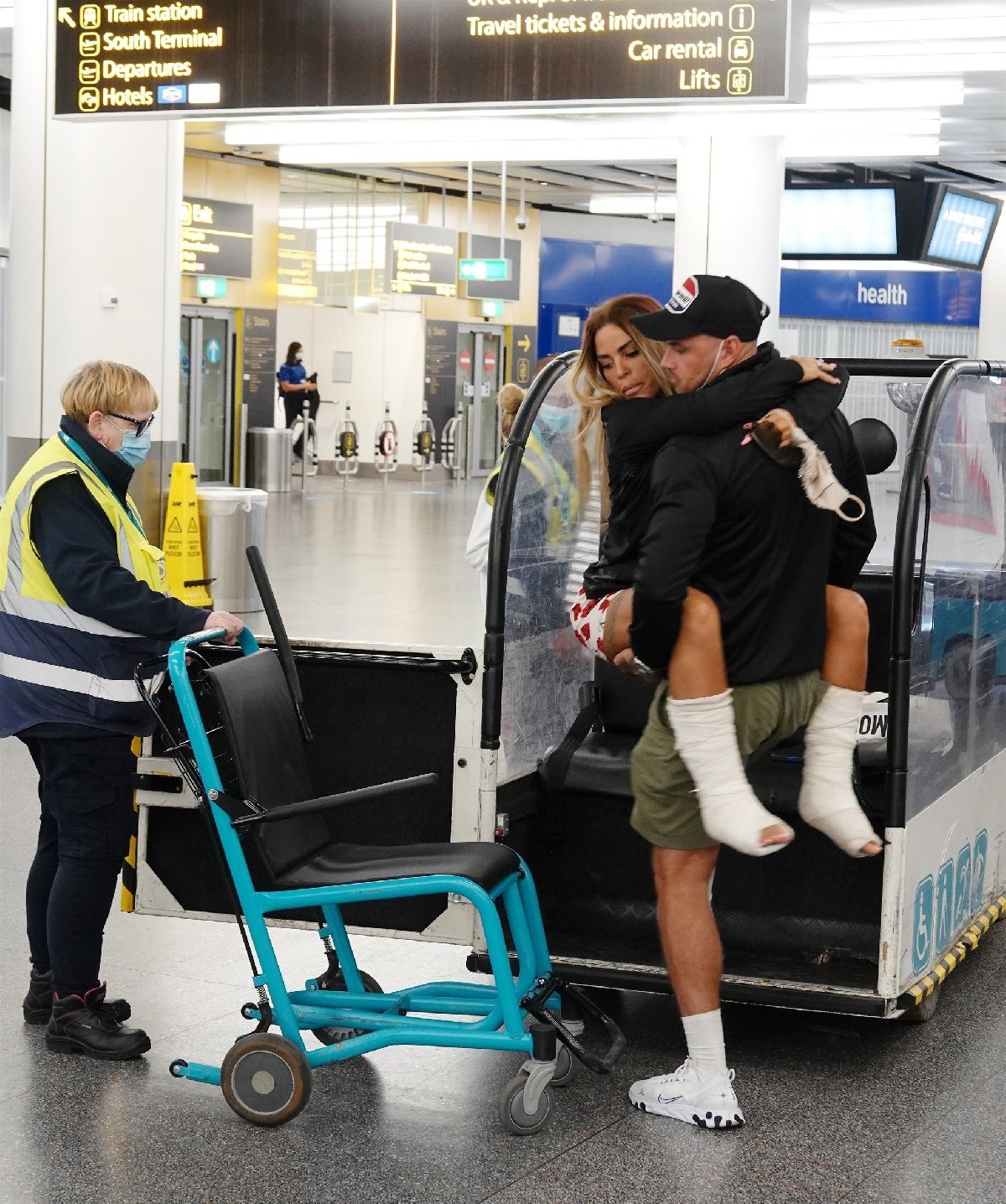 42 yaşındaki yıldız, yeni sevgilisi Carl Woods ve Türkiye’ye getirdiği iki çocuğuyla birlikte Londra’daki Heathrow Havaalanı’nda görüntülendi. Uçaktan indikten sonra havaalanında özel bir araca binen Price, tekerlekli sandalye kullanarak havaalanından çıktı.