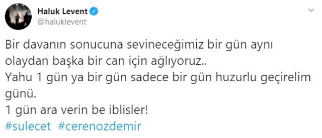 “Bir davanın sonucuna sevineceğimiz bir dün aynı olaydan başka bir can için ağlıyoruz. Yahu 1 gün ya bir gün sadece bir gün huzurlu geçirelim günü. 1 gün ara verin be iblis”