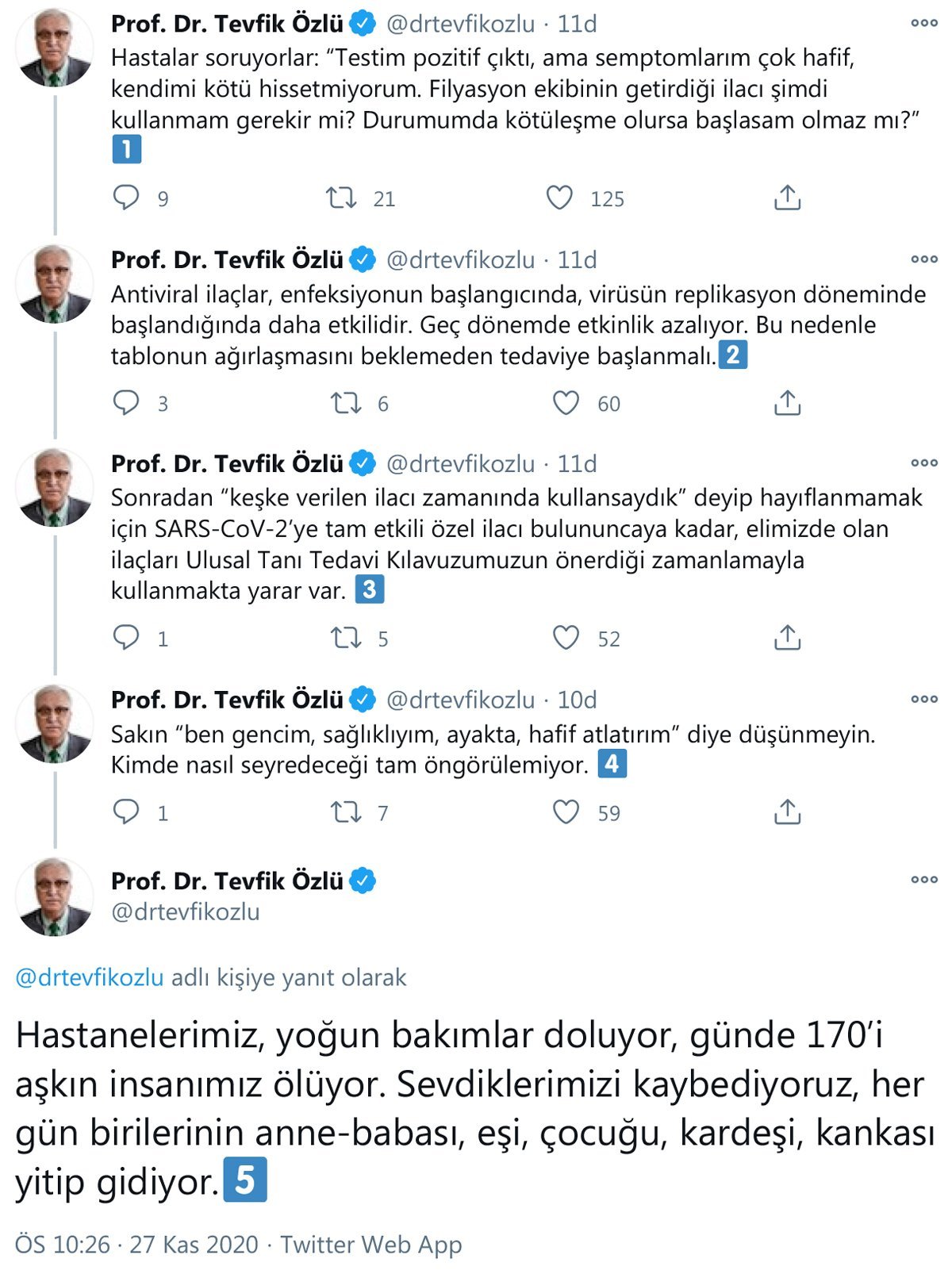 Sağlık Bakanlığı Koronavirüs Bilim Kurulu Üyesi Prof. Dr. Tevfik Özlü, sosyal medya hesabından corona virüsü konusunda uyarılarda bulundu.