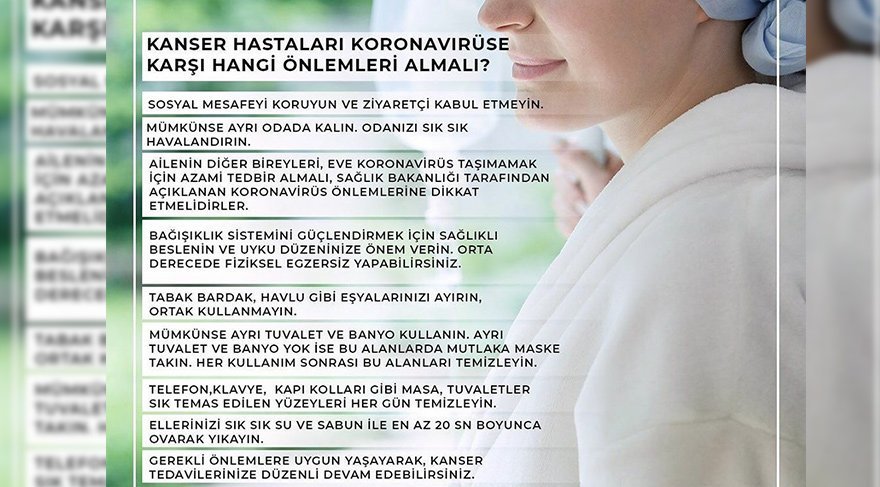 Derneğimiz ve tüm merkezlerimiz kanser hastalarını evde, hastanede ve tedaviye gelirken COVID-19 enfeksiyonuna karşı alınması gerekli korunma önlemleri hakkında bilgilendirmektedir. Radyasyon onkolojisi merkezlerinde hastalarımızın, hasta yakınlarının ve görevli personelinin korunmasına yönelik her türlü önlem alınmıştır.”