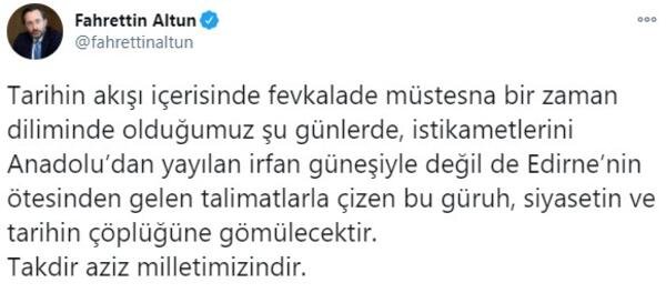 İletişim Başkanı Altun, Twitter hesabından yaptığı açıklamada şu ifadelere yer verdi;