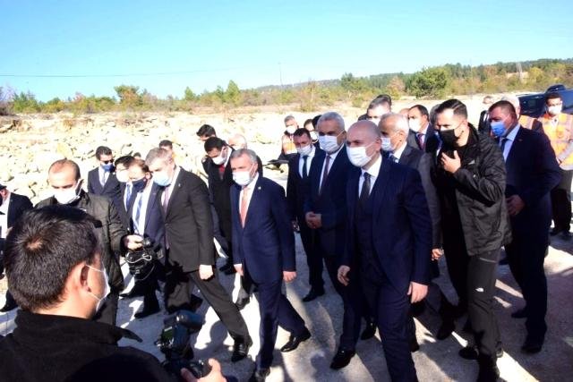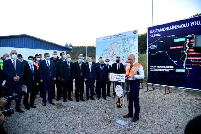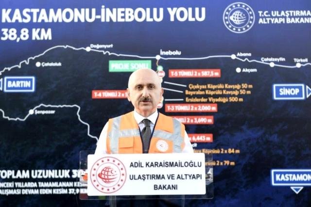 Bakan Karaismailoğlu, açıklamalarının ardından İnebolu yolu üzerinde yapımı devam eden 18 kilometresi tünelle geçilecek olan 38,8 kilometre uzunluğundaki yol çalışlarında da incelemelerde bulundu.