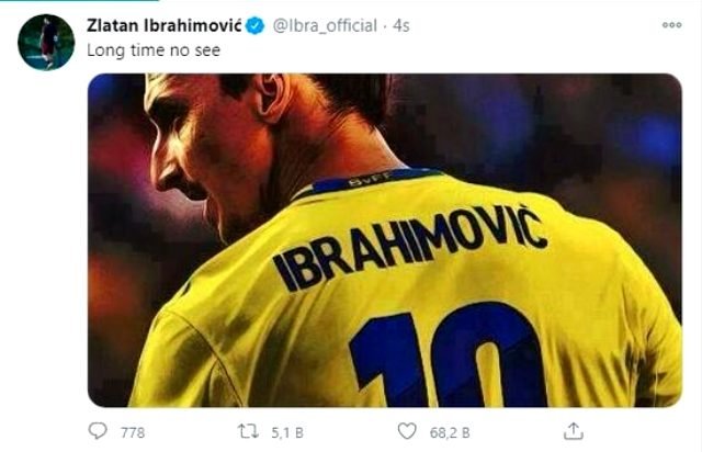 Sosyal paylaşım sitesi Twitter hesabından İsveç Milli Takımı’nda forma giydiği dönemlerden fotoğrafını paylaşan 39 yaşındaki Ibrahimovic, “Beni bu formayla görmeyeli uzun zaman oldu” ifadelerini kullandı.