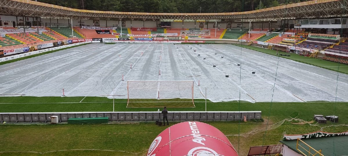 Saha zemininin dolu ve kuvvetli yağış ihtimaline karşı çimlerinin zarar görmemesi ve müsabakanın sağlıklı bir şekilde gerçekleşmesi için önlemler alındı. Meydana gelebilecek dolu ve kuvvetli yağış gibi olumsuzluklardan çimlerin etkilenmemesi için Alanya Belediyesi Spor İşleri Müdürlüğü tarafından üzeri sera naylonları ile kapattı.