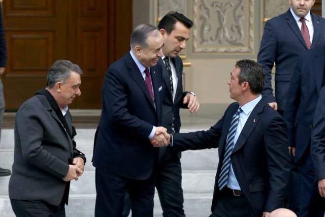 Ali Koç, Mustafa Cengiz’e, “Sayın Başkan, konuşmalarınız beni üzüyor” dedi. Bunun üzerine Cengiz de, “Ben hep senin konuşmalarından sonra cevap vermek zorunda kalıyorum. Taş hep senden geliyor. Asıl ben üzülüyorum. Size yanıt vermek zorunda kalıyorum. Sizinle ilgili sizden evvel hiç açıklamamız olmadı” yanıtını verdi. Fenerbahçe Başkanı Ali Koç, çıkışta Galatasaray Başkanı Mustafa Cengiz ile tokalaşırken, Trabzonspor Başkanı Ahmet Ağaoğlu ile de sarılarak samimi görüntüler verdi.