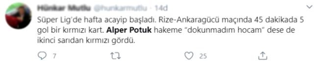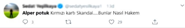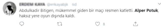 Yıldız futbolcunun ikinci sarı karttan gördüğü kırmızı kart twitterda gündem oldu. Futbolseverler sosyal medya aracılığıyla, hakemin verdiği kararı eleştirdi. Bir taraftar hakem Abdülkadir Bitigen’in maçı katlettiğini savunurken, başka bir paylaşmında verilen karar skandal olarak değerlendirildi.
