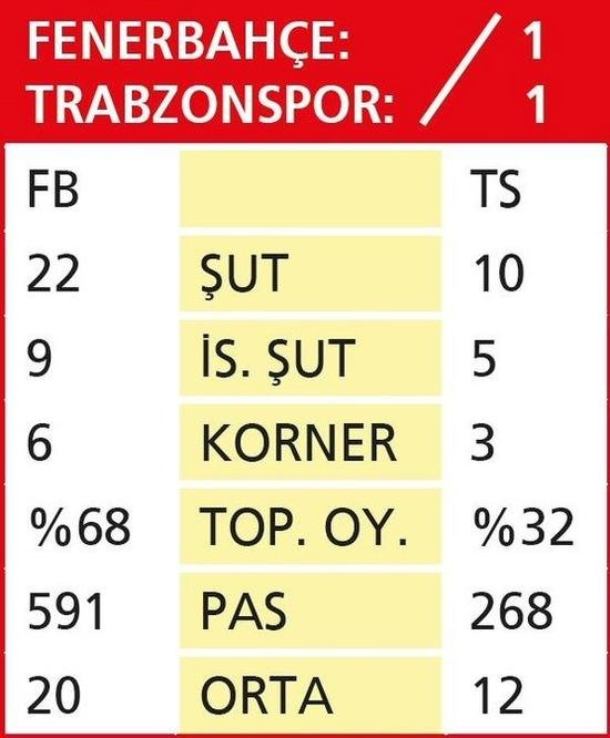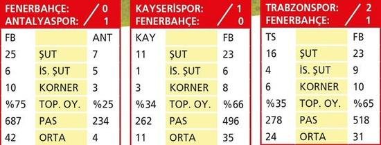 Bu 4 maçta topla oynama, kaleyi atılan şut ve isabetli pas sayılarında rakiplerine fark atan Fenerbahçe, futbolunu skora yansıtamayınca sadece 1 puanla yetindi. 1 puanı da evinde Trabzonspor’la 1-1 berabere kaldığı maçta aldı.