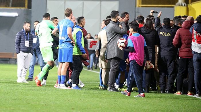 Polisin oluşturduğu güvenlik koridoru sonrasında iki takım oyuncuları da soyunma odasına girdi.