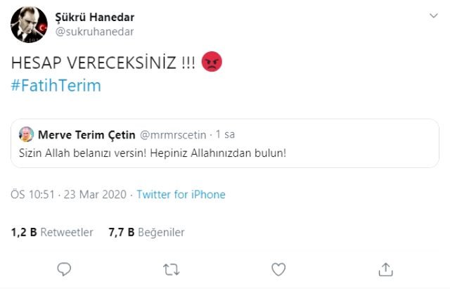 Şükrü Hanedar, Twitter’den paylaştığı mesajda Merve Çetin’in tweetini alıntılayarak “Hesap vereceksiniz” ifadelerini kullandı.