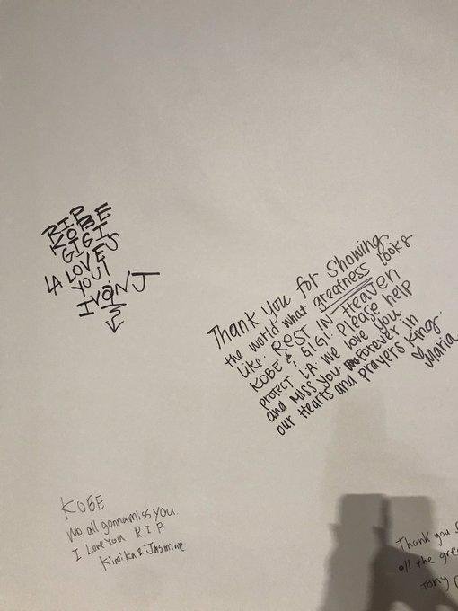Yas tutan hayranlar, Bryant’ı anmak için Lakers’ın antrenman tesisinin dışında toplandılar. Lakers muhabir, Tania Ganguli’ye göre, bazı hayranlar büyük bir beyaz tuval üzerine imza atarak, Bryant’a vedalarını sundular.