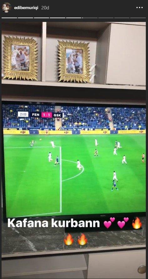 Süper Lig’in 14. haftasında sahasında Gençlerbirliği’ni konuk eden Fenerbahçe’de golcü futbolcu Vedat Muriqi’nin eşi Edibe Muriqi, karşılaşma devam ederken paylaşımlarda bulundu.