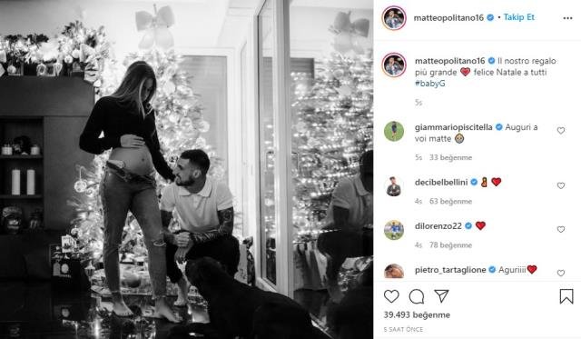 27 yaşındaki futbolcu hamile olan kız arkadaşına dikkat çekmek amacıyla payşatığı fotoğrafın altına “En büyük hediyemiz. Herkese mutlu Noeller” notunu da düşmeyi ihmal etmedi. O ve kız arkadaşı Ginevra Sozzi ilk çocuklarını bekliyorlar.