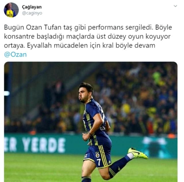 Geçtiğimiz sezon gösterdiği performans ve takımı sahiplenişiyle kaptanlığa kadar yükselen Ozan Tufan dün gece derbinin 11’inde yer aldı. Yıldız oyuncu gösterdiği performans ile maça damga vurdu.