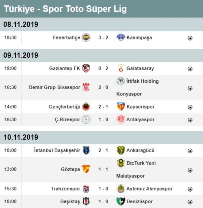 SÜPER LİG’DE 11. HAFTA MAÇ SONUÇLARI
