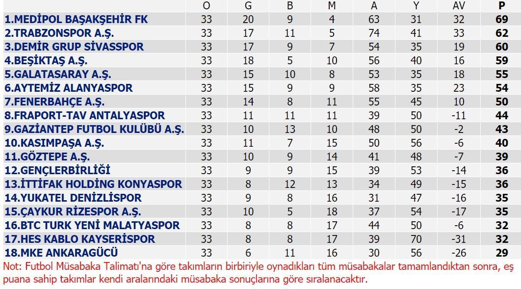 Süper Lig’de son haftanın programı şöyle: