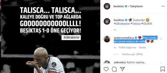 Talisca’nın bu sözleri binlerce beğeni alırken siyah beyazlı taraftarlar Instagram üzerinden Talisca’ya sevgi gösterilerinde bulundu.