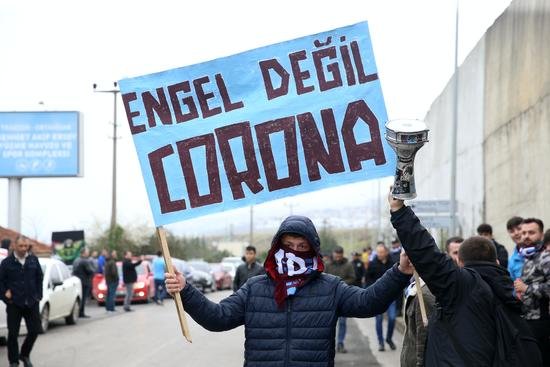 Bu arada, bazı taraftarların “Engel değil Korona”, “Sadakat armaya” yazılı pankart ve dövizler açtıkları görüldü.