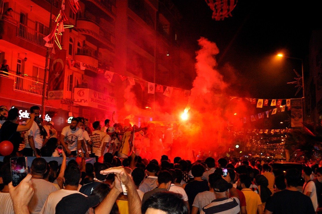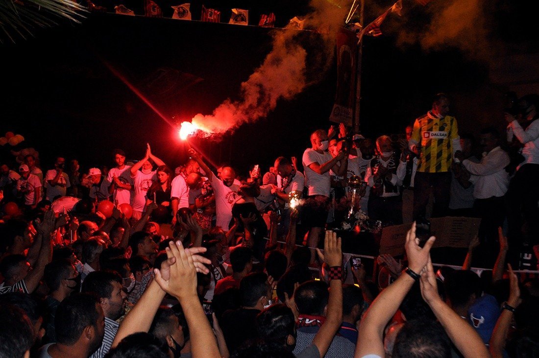 Antalya’da geçen pazar oynanan 2019-2020 Sezonu TFF 3’üncü Lig 2’nci Grup Play-Off Finali’nde Karşıyaka’yı normal süresi 1-1, uzatma bölümü 2-2 sona eren maçta penaltı atışları sonucunda 7-5 mağlup eden Turgutluspor, TFF 2’nci Lig’e yükseldi. Turgutluspor taraftarları şampiyonluğu coşkuyla kutlarken, sosyal mesafe ve maske kurallarına uyulmadığı gözlendi.