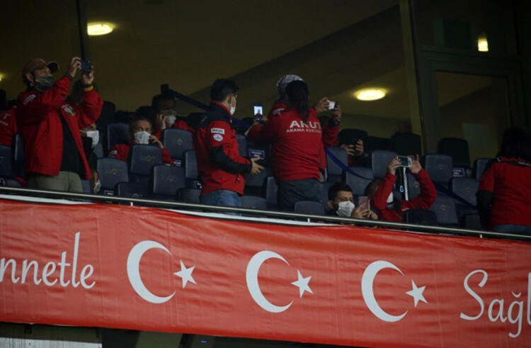 Türkiyenin Rusya’yı konuk ettiği karşılaşmada Arama Kurtarma Derneği (AKUT) tribünde mücadeleyi takip etti. Özellikle İzmir’de yaşanan deprem felaketinde büyük özveriyle çalışan AKUT ekipleri, Türkiye Futbol Federasyonu’nun (TFF) özel davetlisi olarak maçı izledi.