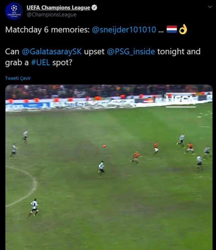 UEFA Şampiyonlar Ligi’nin sosyal medya hesabı Galatasaray’ın Juventus’u mağlup ettiği karşılaşmayı unutmadı ve takipçileriyle paylaştı. Şampiyonlar Ligi B Grubu son maçında 10 Aralık 2013 tarihinde Türk Telekom Stadyumu’nda oynanan müsabaka yoğun kar yağışı nedeniyle bir sonraki güne ertelenmişti. 11 Aralık’ta saat 15.00’te devam eden karşılaşmayı sarı-kırmızılılar Wesley Sneijder’in 85. dakikada attığı golle kazanmıştı. İki gün süren mücadele sonucunda Cimbom, adını bir üst tura yazdırmış ve unutulmaz zaferlerinden birini elde etmişti.